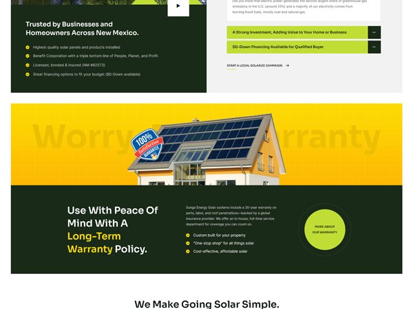 Sungo Energy Solar systems include a 30-year warranty on parts, labor, and roof penetrations—backed by a global insurance provider. We offer an in-house, full-time service department for coverage you can count on.